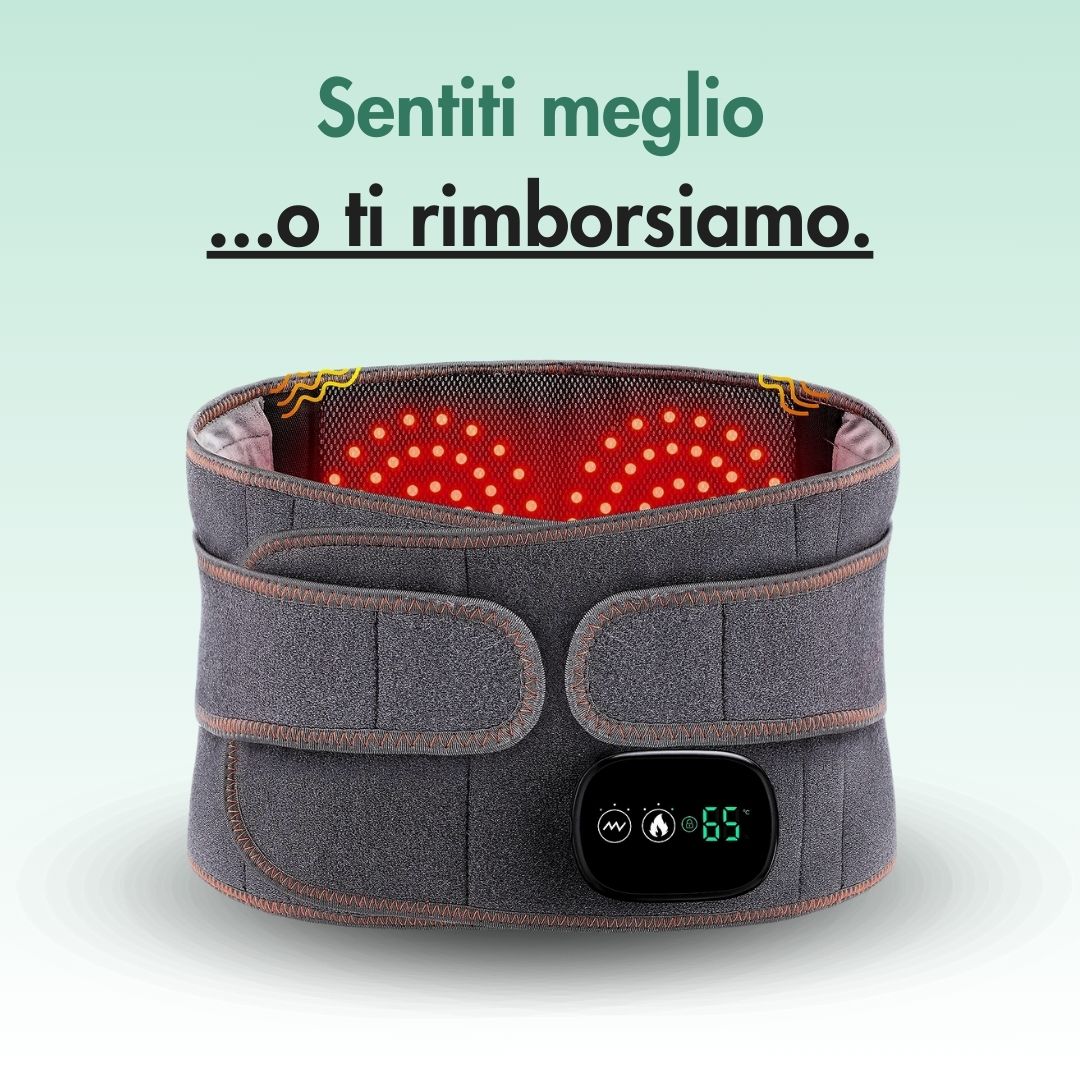 LombaFlex è una fascia progettata per fornire sollievo e rilassamento ai muscoli della parte bassa della schiena attraverso una combinazione di terapia del calore, terapia a luce rossa, massaggio terapeutico, compressione mirata e supporto lombare. Ecco come funziona: