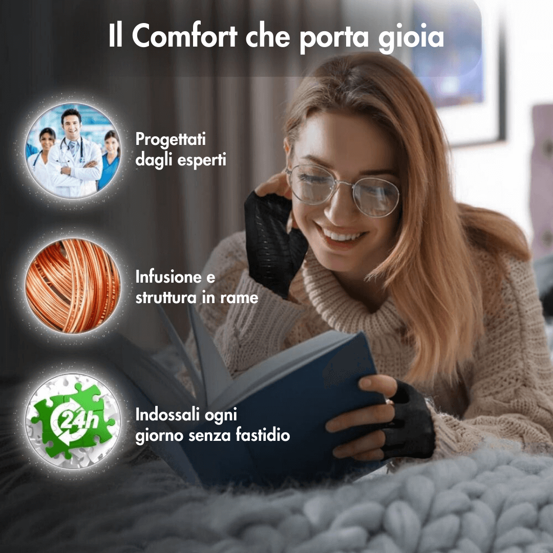 "FANTASTICI! Non sapevo quanto avessi bisogno di questi guanti finché non li ho provati! Sollievo immediato e molto comodi da indossare quotidianamente."